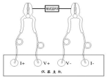 將儀器的I+、V+、V-、I-端子與被試品按圖二的方法聯接好。這種聯接法,可消除接觸電阻以及聯線電阻對測量的影響。