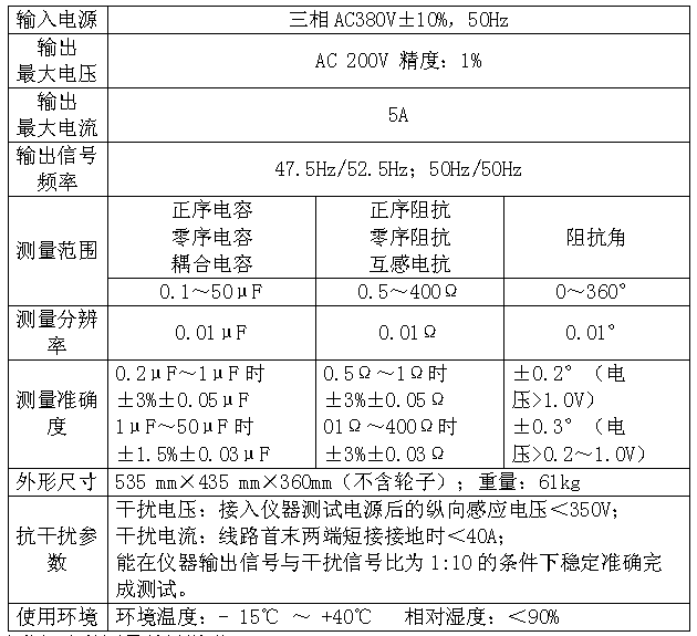 本儀器能夠準(zhǔn)確測量各種高壓輸電線線路(架空、電纜、架空電纜混合、同桿多回架設(shè)的工頻參數(shù)(正序電容、零序電容、正序阻抗、零序阻抗、互感和耦合電容、相間電容等)。